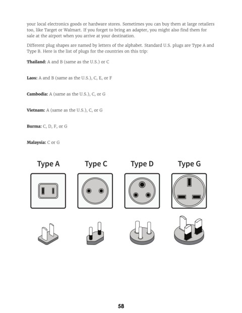 Type B. Here is the list of plugs for the countries on this trip: