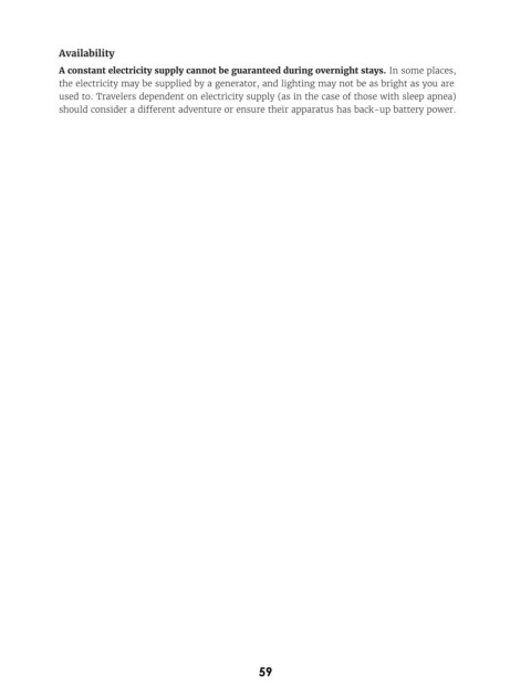 A constant electricity supply cannot be guaranteed during overnight stays. In some places,