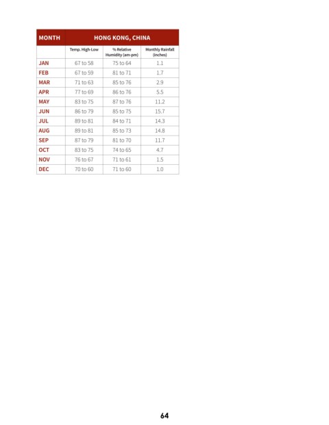 Temp. High-Low % Relative Monthly Rainfall