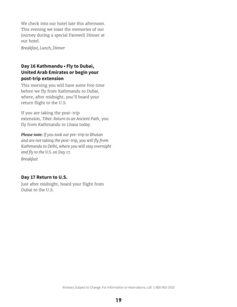Itinerary Subject to Change. For Information or reservations, call 1-800-955-1925