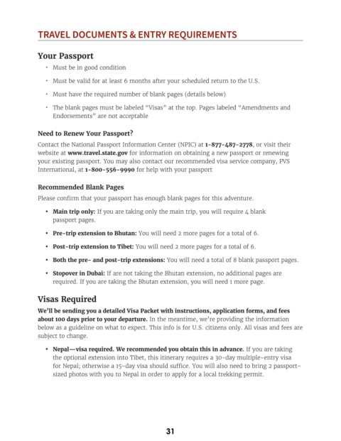 • Pre-trip extension to Bhutan: You will need 2 more pages for a total of 6.