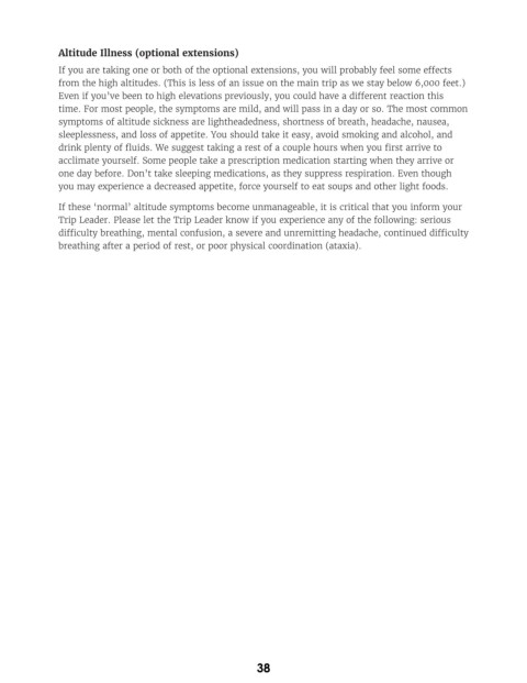 from the high altitudes. (This is less of an issue on the main trip as we stay below 6,000 feet.)