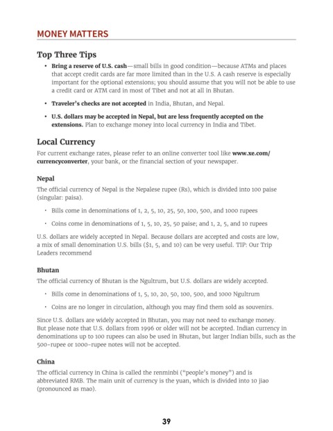 extensions. Plan to exchange money into local currency in India and Tibet.