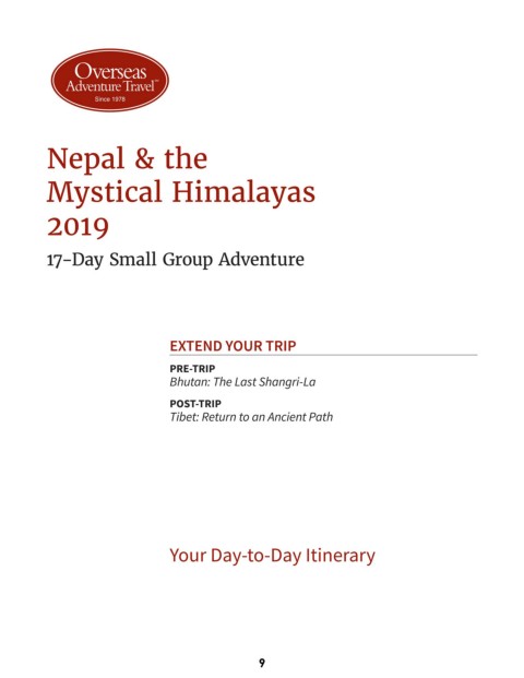 Overseas Adventure Travel SM Since 1978 Nepal & the Mystical Himalayas 2019 17-Day Small Group Adventure EXTEND YOUR TRIP PRE-TRIP Bhutan: The Last Shangri-La POST-TRIP Tibet: Return to an Ancient Path Your Day-to-Day Itinerary 9