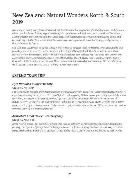Itinerary Subject to Change. For Information or reservations, call 1-800-955-1925