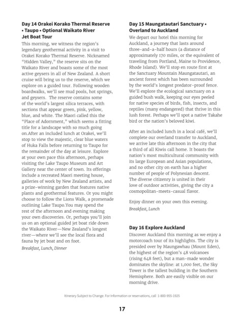 Day 14 Orakei Korako Thermal Reserve Day 15 Maungatautari Sanctuary •