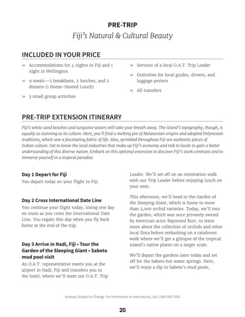 » Accommodations for 4 nights in Fiji and 1 » Services of a local O.A.T. Trip Leader