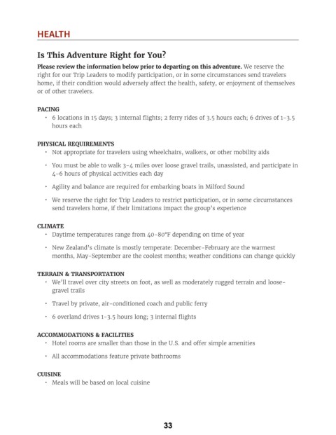 right for our Trip Leaders to modify participation, or in some circumstances send travelers