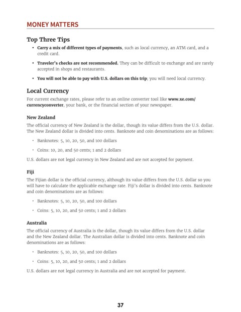 • You will not be able to pay with U.S. dollars on this trip; you will need local currency.