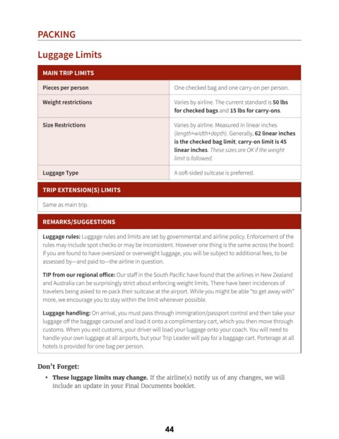 • These luggage limits may change. If the airline(s) notify us of any changes, we will