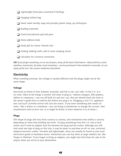 repellent, moisturizer, lip balm, moist towelettes—can be purchased in New Zealand or Australia. So can