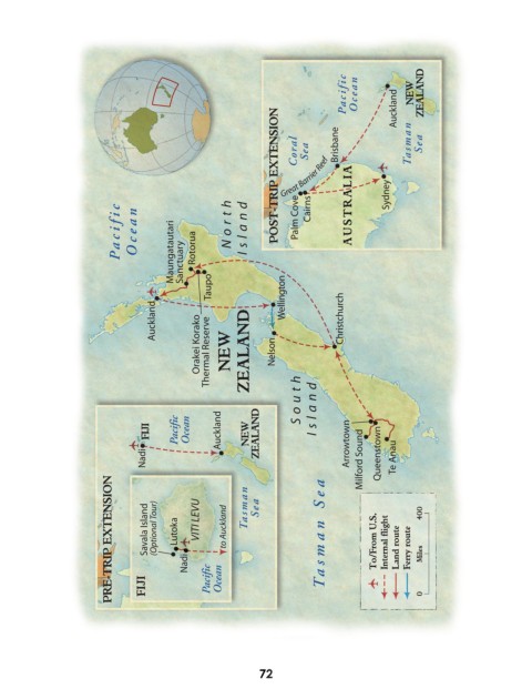 PRE-TRIP EXTENSION FIJI Savala Island (Optional Tour) Lutoka Nadi VITI LEVU Pacific Ocean to Auckland Tasman Sea asman S T To/From U.S. Internal flight Land route Ferry route 400 Miles 0