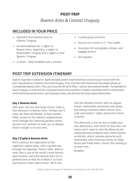 post-trip adventure to Buenos Aires and Uruguay. First, stroll the wide boulevards and elegant plazas of