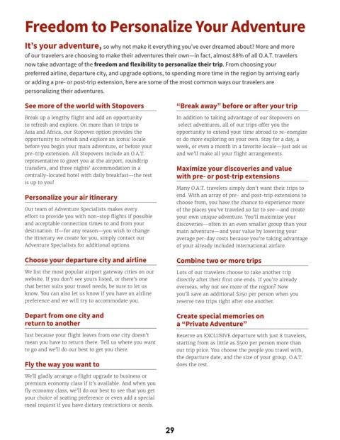 of our travelers are choosing to make their adventures their own—in fact, almost 88% of all O.A.T. travelers