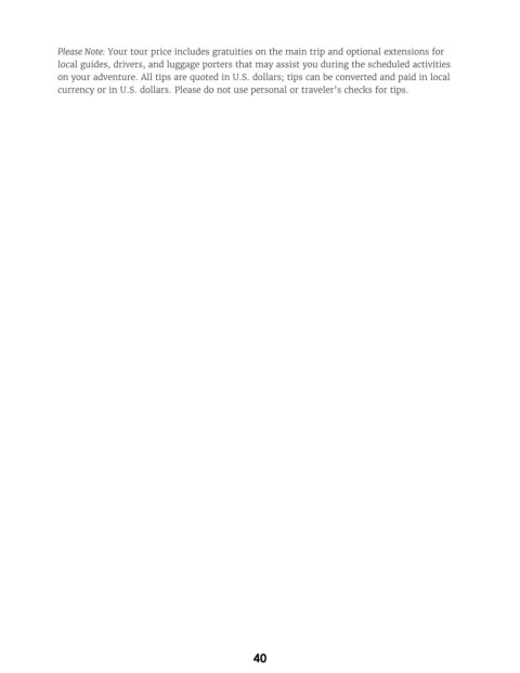 on your adventure. All tips are quoted in U.S. dollars; tips can be converted and paid in local