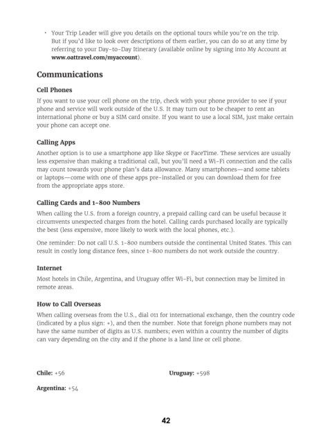 • Your Trip Leader will give you details on the optional tours while you’re on the trip.