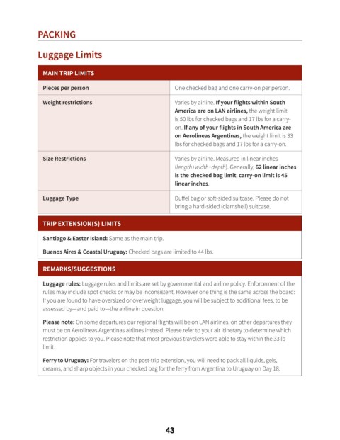 Buenos Aires & Coastal Uruguay: Checked bags are limited to 44 lbs.