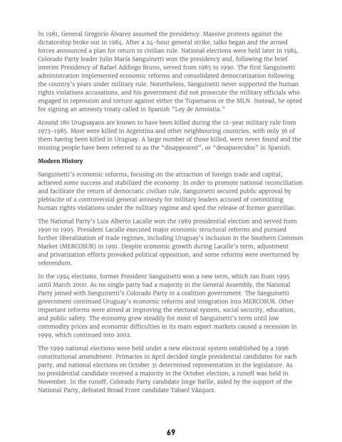 and public safety. The economy grew steadily for most of Sanguinetti’s term until low