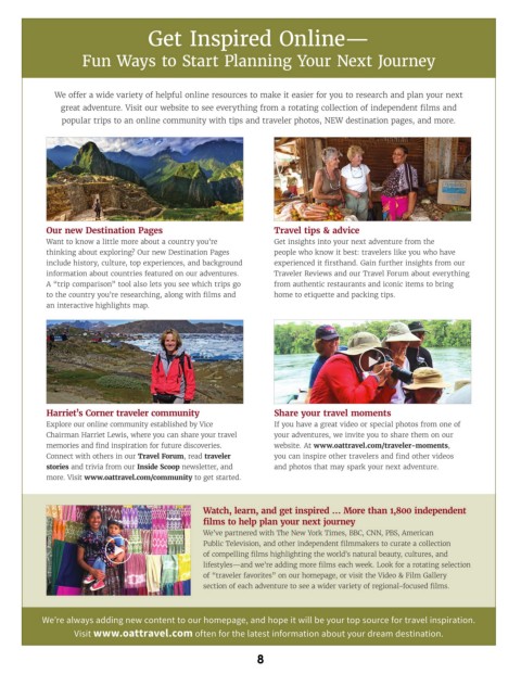 memories and find inspiration for future discoveries. website. At www.oattravel.com/traveler-moments,