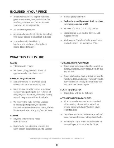 Itinerary Subject to Change. For Information or reservations, call 1-800-955-1925