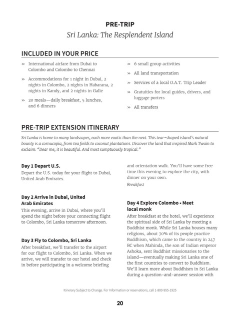PRE-TRIP EXTENSION ITINERARY