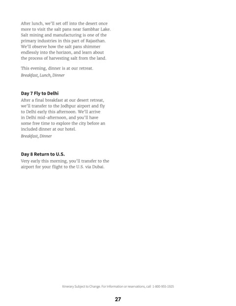Itinerary Subject to Change. For Information or reservations, call 1-800-955-1925