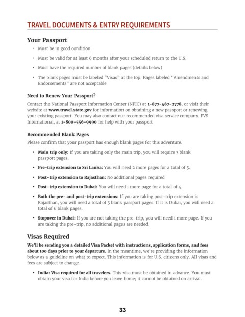 • Pre-trip extension to Sri Lanka: You will need 2 more pages for a total of 5.