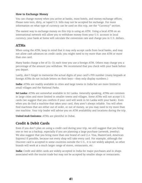 one machine. Your trip leader will advise you on ATM availability and locations during the trip.