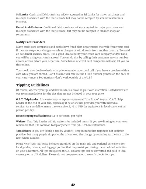 on your adventure. All tips are quoted in U.S. dollars; tips can be converted and paid in local