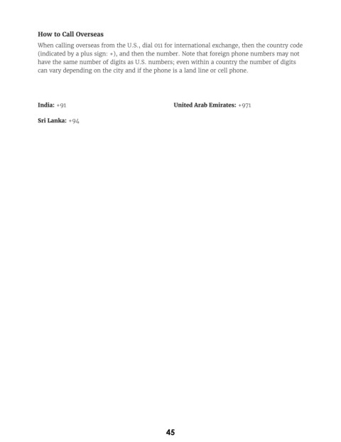 When calling overseas from the U.S., dial 011 for international exchange, then the country code