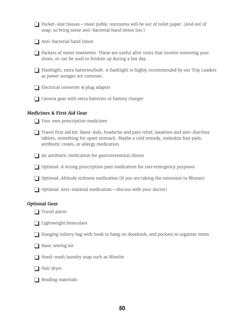 T Optional: Altitude sickness medication (if you are taking the extension to Bhutan)
