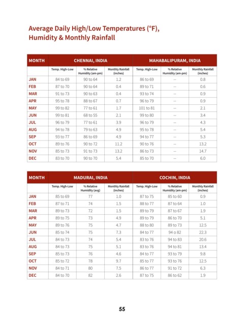 Temp. High-Low % Relative Monthly Rainfall Temp. High-Low % Relative Monthly Rainfall