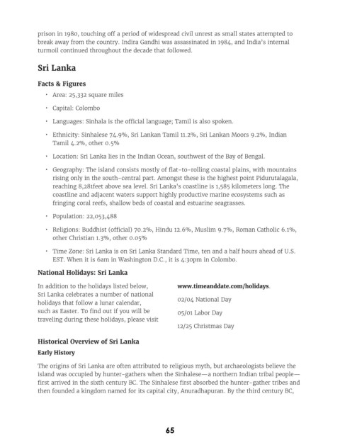 • Time Zone: Sri Lanka is on Sri Lanka Standard Time, ten and a half hours ahead of U.S.