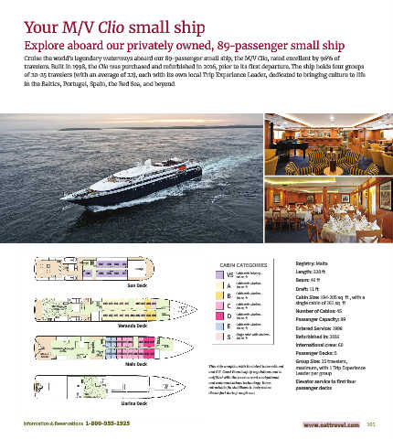 travelers. Built in 1998, the Clio was purchased and refurbished in 2016, prior to its first departure. The ship holds four groups